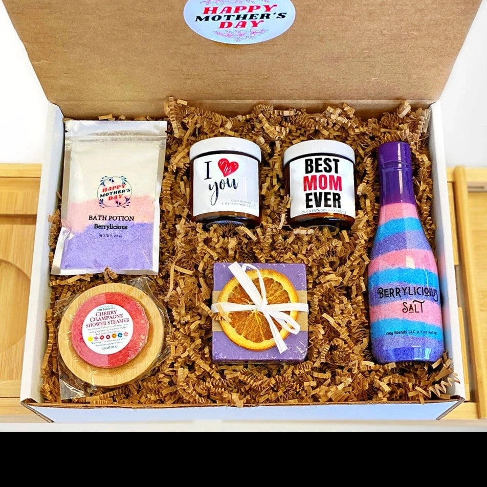 Treat the Best Mom Ever to some well-deserved TLC with our Mothers Day Self Care Gift Set! Includes a sweet I Love You Candle, a Best Mom Ever Candle, colorful Berrylicious Bath Salt, assorted shower steamers, a wooden tray for your shower steamers, Mother's Day Bath Potion in berrylicious, and an assorted Artisan Soap.