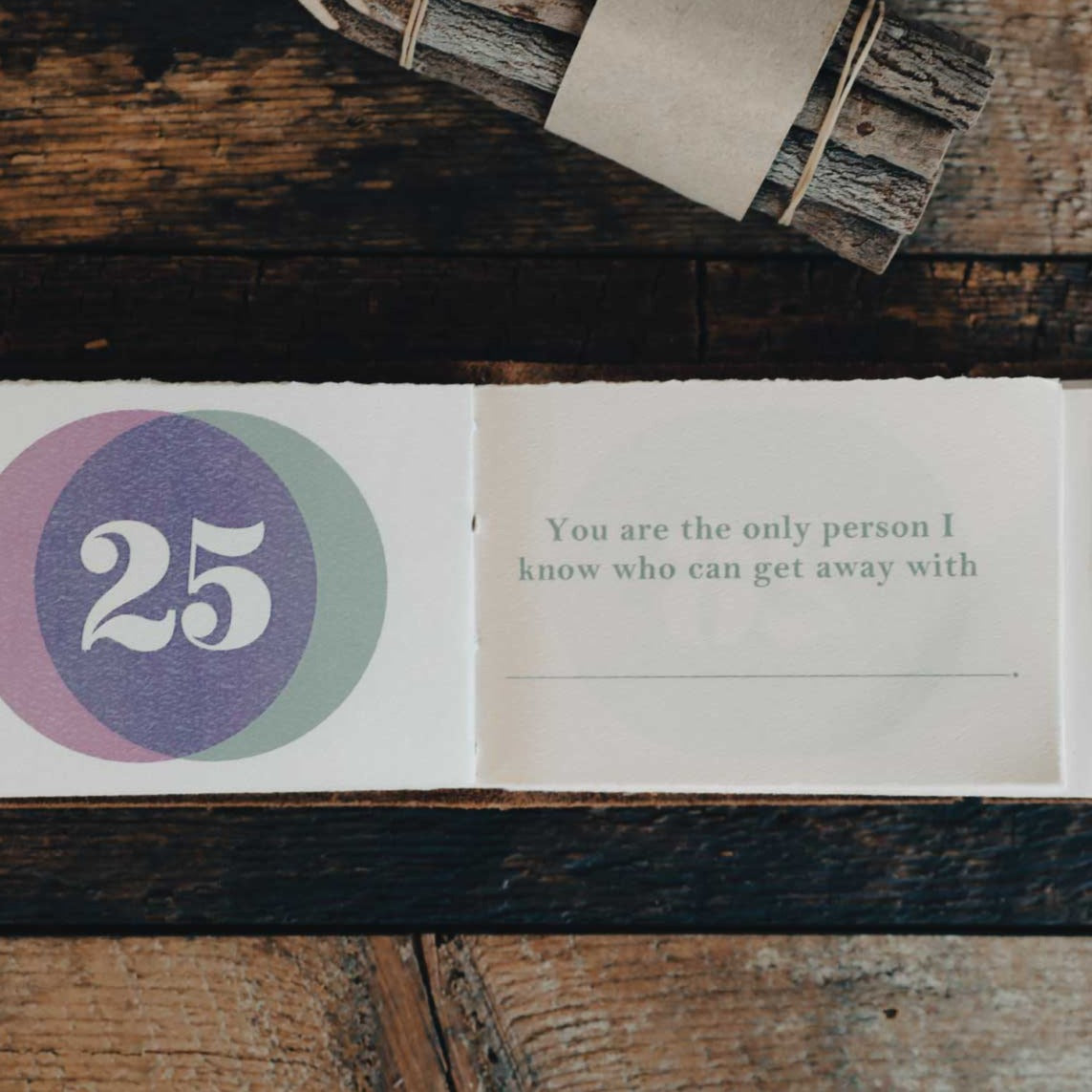 I got this for my guy and am currently filling it out. My only issue is that my brain goes from straight lovey dovey to “I’m on Santa’s Naughty List come December..” That being said, this truly is a wonderful gift! A purchase well worth the price to let your person know all the small and big things you love about them.
